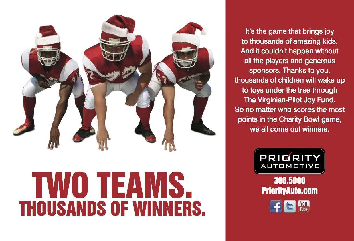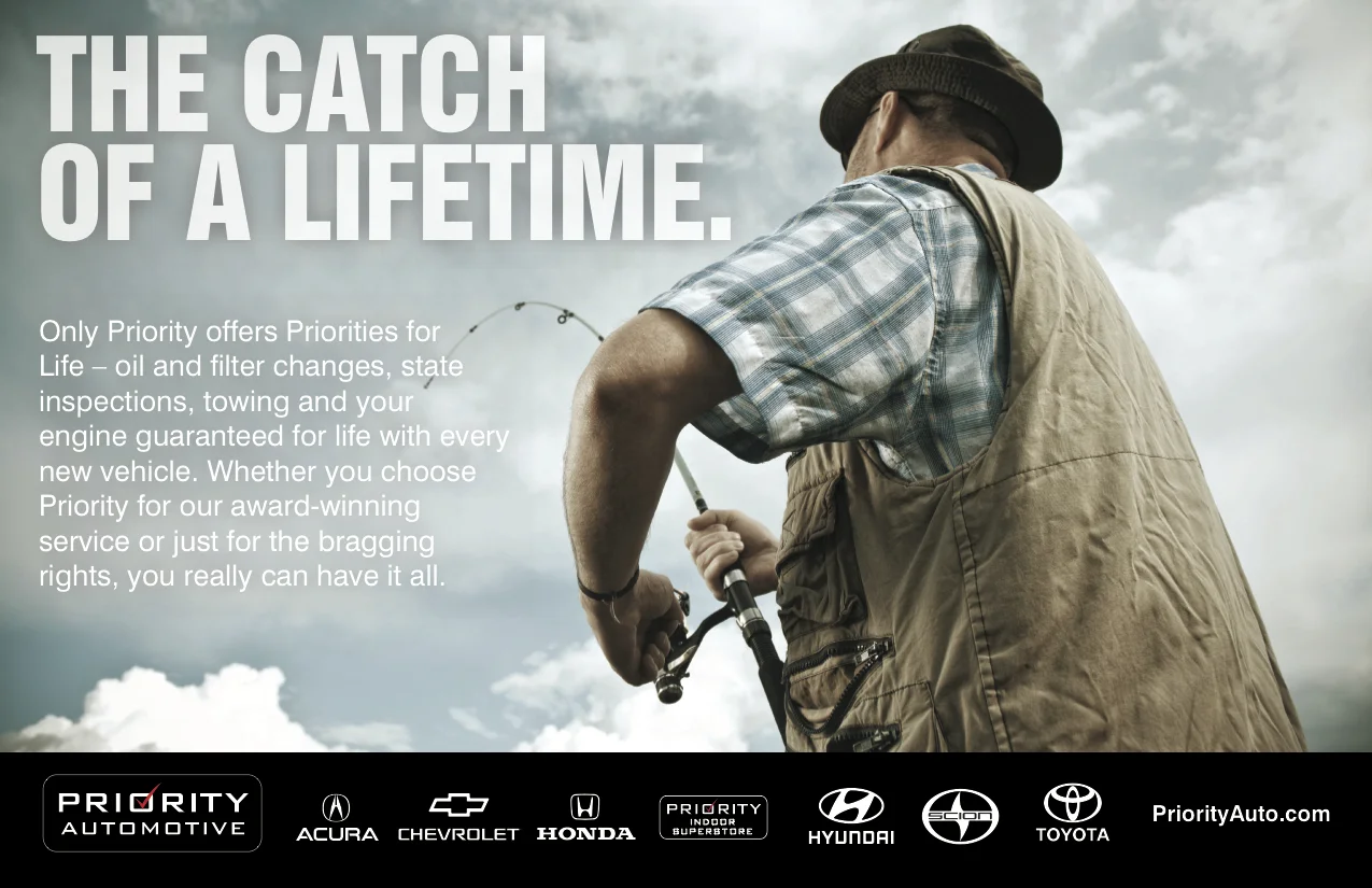 Davis & Company’s largest account required a lot of copywriting and constant concepting to keep up with the brand’s activity on every media channel you can think of. I love radio. And Priority Automotive allowed me plenty of opportunities to test my skills in that medium.